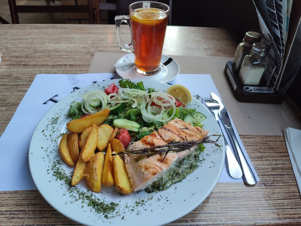 Nasz lokal urządziliśmy w tradycyjnym, charakterystycznym dla Pomorza Zachodniego, marynistycznym stylu. Menu obfituje w lokalne specjały, zwłaszcza świeże ryby, które trafiają do naszej smażalni prosto z kutra zaprzyjaźnionych rybaków.